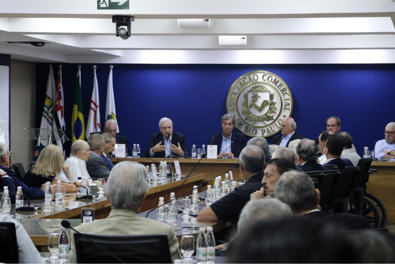 Compuseram a Mesa dos trabalhos o Presidente Ordine; Rogério Amato, Coordenador do Conselho Superior; o Conselheiro Marcos Nascimento, Secretário da Mesa; o Conselheiro Guilherme Afif Domingos; e João Carlos Maradei, Secretário do Processo eleitoral e Presidente da Comissão Eleitoral.