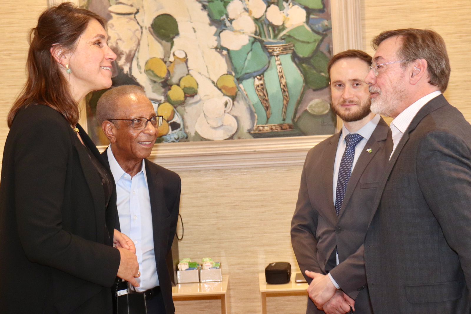 A reunião contou com a presença dos diretores da Facesp Nelson Andujar e Marcelo Nunes, além de Vinicius de Moraes Roland, representante do Estado da Baviera no Brasil.