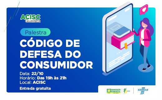 A Associação Comercial e Industrial de São Carlos (ACISC) realiza na próxima terça-feira (22), às 19h, no Palácio do Comércio Miguel Damha (Auditório ACISC), a palestra ‘Por dentro do Código de Defesa do Consumidor’. As inscrições são limitadas e devem ser feitas com antecedência.