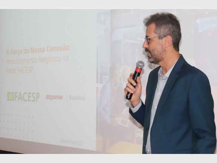 O CEO da Equifax | Boa Vista, Henrique Moraes, apresentou o crescimento da empresa e os planos para fortalecer a parceria com a Rede Facesp. “Houve uma mudança de paradigma. A Equifax enxerga a Facesp e as Associações Comerciais como parceiras, não apenas como um canal de vendas”, destacou. Ele adiantou que novos produtos serão lançados em 2026, com foco em inovação e uso de Inteligência Artificial (IA).