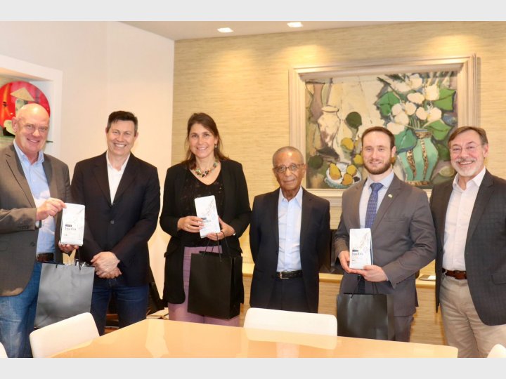 A reunião contou com a presença dos diretores da Facesp Nelson Andujar e Marcelo Nunes, além de Vinicius de Moraes Roland, representante do Estado da Baviera no Brasil.